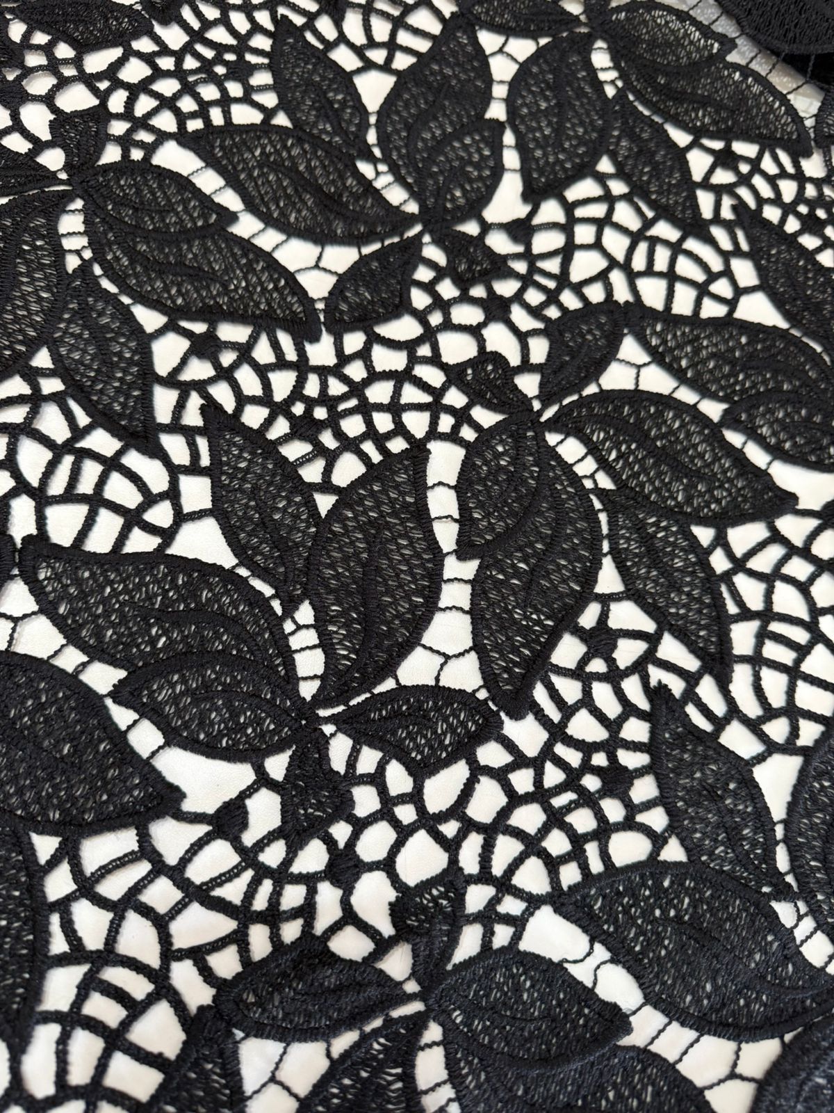 O tecido guipir (ou guipure) é um tipo de renda encorpada e sem transparência entre os desenhos, conhecido pelo seu aspecto luxuoso, sofisticado e estruturado. Ao contrário de outras rendas mais leves (como a chantilly ou a renda com elastano), o guipir tem um relevo marcante e é feito com desenhos entrelaçados por fios mais grossos, geralmente de algodão ou poliéster.